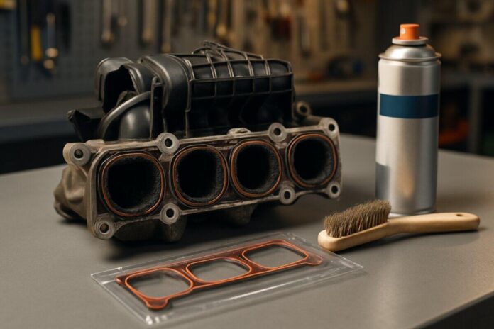 2. Mechanische Reinigung (Ausbau): Der Ansaugkrümmer wird ausgebaut und mit einer Drahtbürste sowie Reinigungsmittel von Hand gesäubert. Danach werden die Einlasskanäle und Ventile geprüft. Diese Methode ist gründlicher und bei starker Verkokung empfohlen.