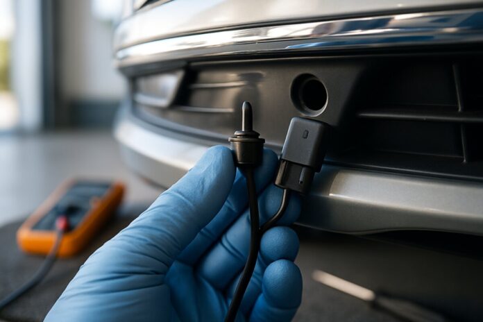 Wer den Sensor selbst wechseln möchte, findet ihn je nach Fahrzeugmodell im Bereich des Kühlergrills, hinter der Frontstoßstange oder am Außenspiegel. Wichtig: Vor der Arbeit immer die Zündung ausschalten und den Minuspol der Batterie abklemmen.
